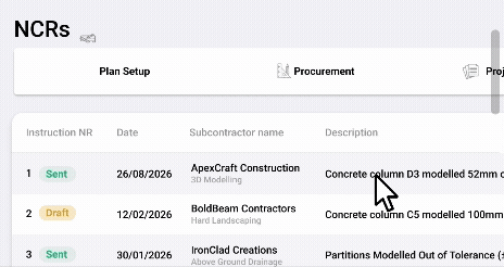 All sent NCRs are recorded per project, creating a comprehensive list without the need for separate Excel or Word documents.
