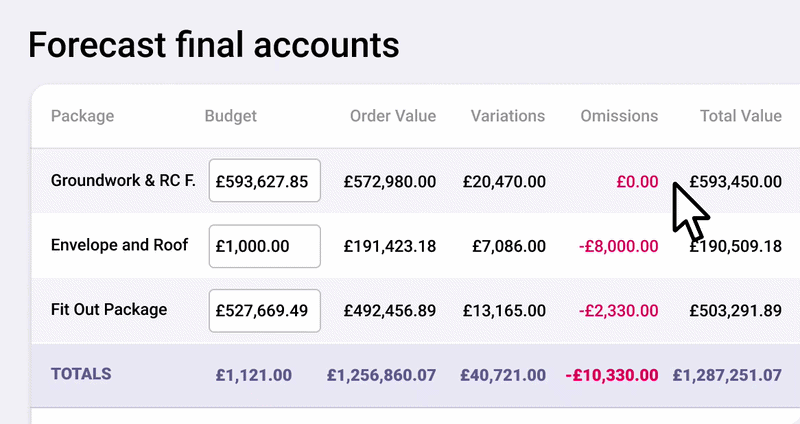Feed into your forecast final account, ensuring all financial implications are tracked throughout the project.