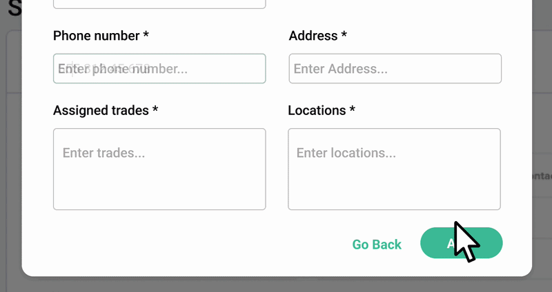 Add the subcontractor's details right into your supply chain, assigning them the relevant trades they cover.